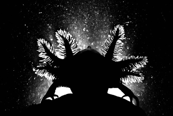 Der Axolotl (Ambystoma mexicanum) ist eine in Mexiko endemische Amphibienart, deren Bestand in den letzten Jahren dramatisch abgenommen hat, und die daher von der IUCN als stark gefährdet eingestuft wird. Zu den wichtigsten Bedrohungen zählen Lebensraumverlust, Wasserverschmutzung durch industrielle Abwässer und die Einführung fremder Arten. Die Aufnahme entstand im Biosphären-Reservat Manantlan und zeigt einen Axolotl, der auf einem Stein ruht.