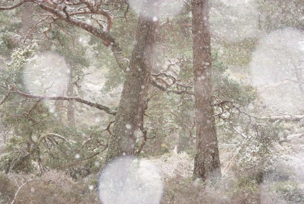 Das Naturreservat Invereshie and Inshriach liegt am Fuße des Cairngorm-Plateaus im schottischen Hochland. Dort habe ich eine Woche damit verbracht, Waldkiefern (Pinus sylvestris) zu fotografieren. Eine Wanderung zwischen den direkten Nachkommen des ursprünglichen Waldes, von denen einige viele hundert Jahre alt sind, war eine Erfahrung, für die ich sehr dankbar bin. Und noch dankbarer war ich für die abrupten Wetterwechsel, die während meines Aufenthaltes stattfanden. Dieses Bild entstand während eines heftigen Schneesturms, von denen es in dieser Woche mehrere gab.