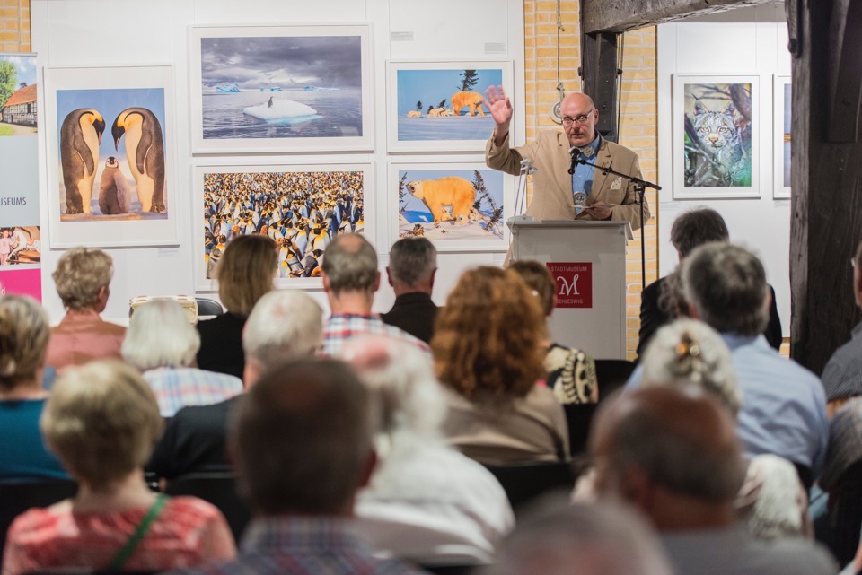 „Das ist die Krönung aller bisherigen Fotoschauen im Stadtmuseum“, lautete das übereinstimmende Urteil der vielen Gäste, die das Werk des weltbekannten Fotografen aus den USA am 2. Juni 2016 bei der Eröffnung seiner der Ausstellung und einen Tag später bei seinem Vortrag in der A. P. Møller-Skolen erlebten.